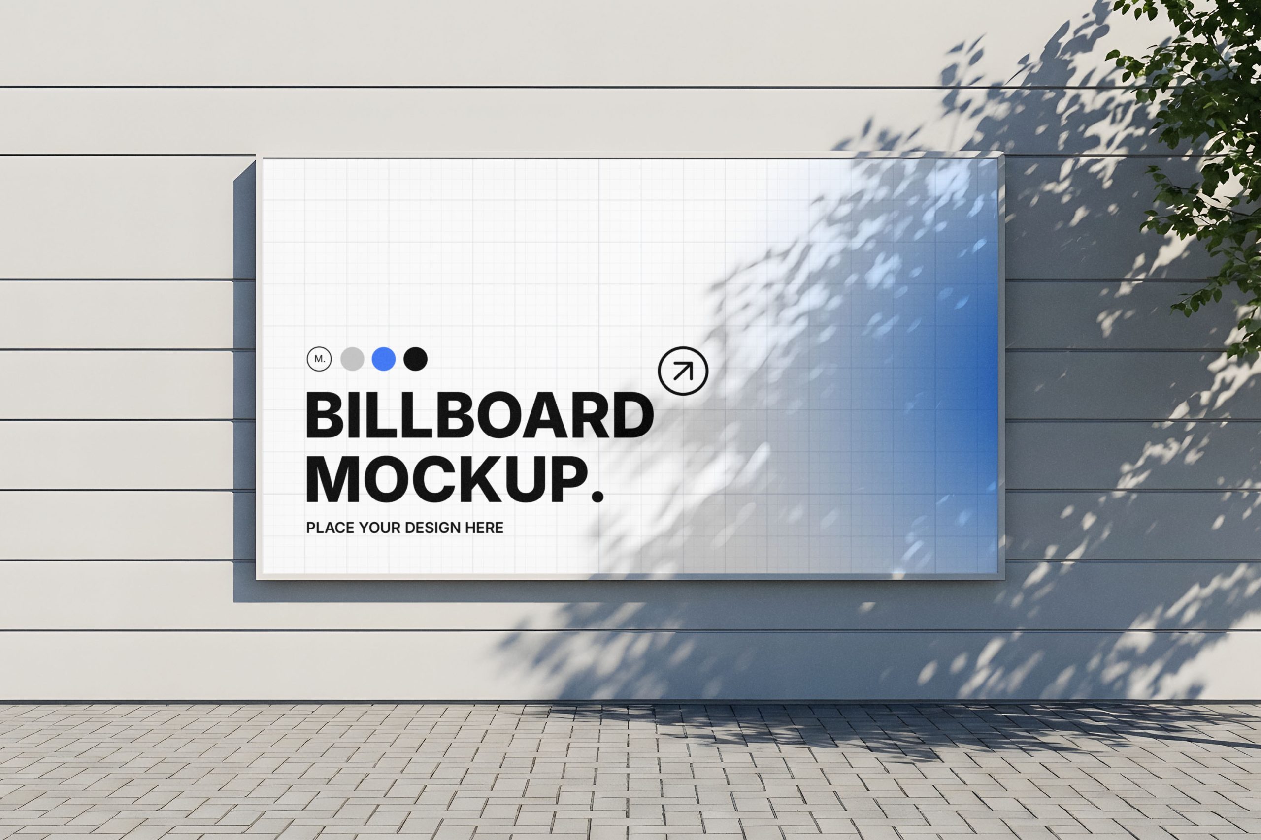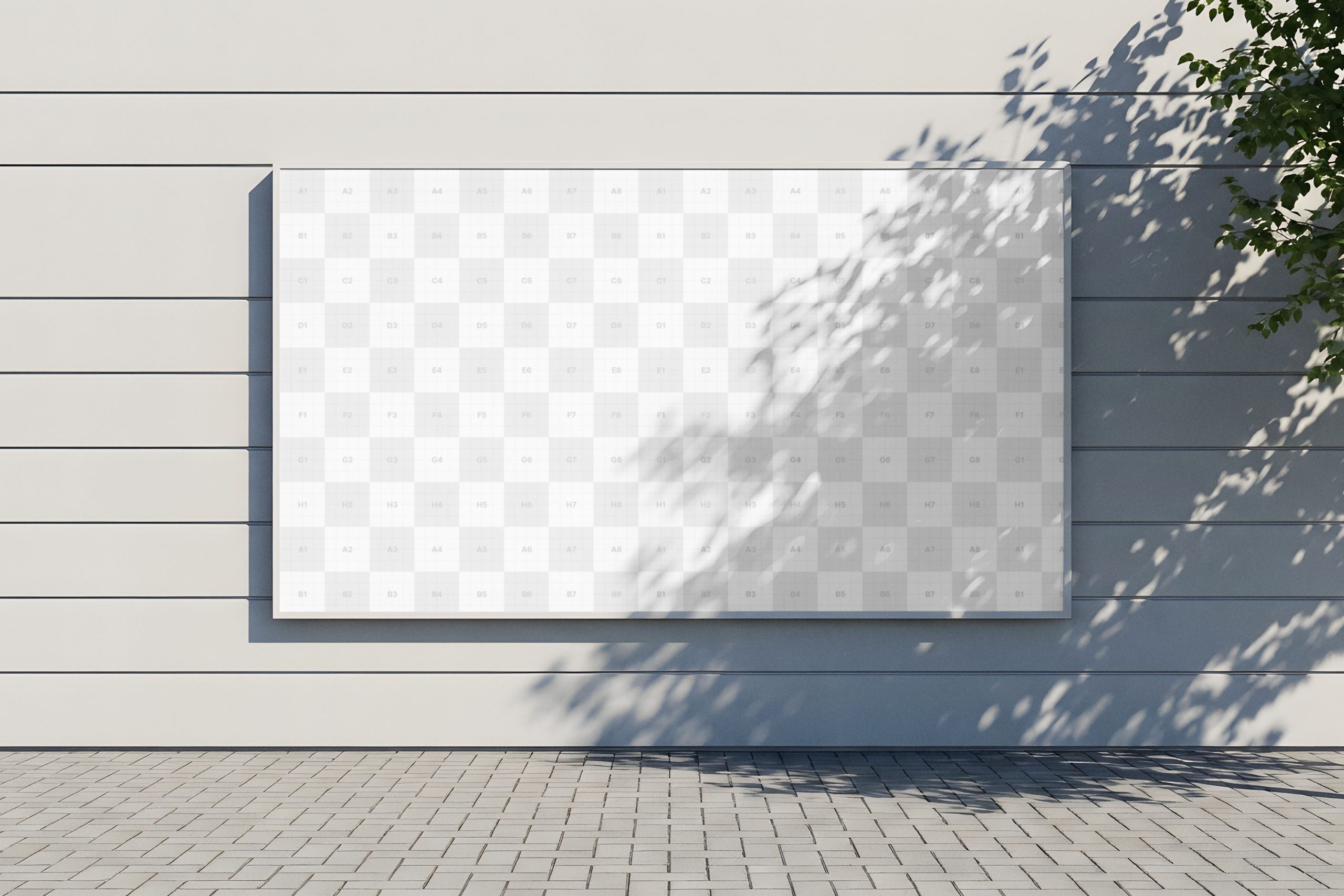 This professional horizontal billboard mockup provides a realistic outdoor advertising setting for your branding projects. Designed to showcase large-scale posters and marketing campaigns, the template features a sleek modern wall background with natural tree shadows that add depth and authenticity. Whether you are presenting a client’s new brand identity or designing a high-impact street advertisement, this high-resolution PSD file offers a clean canvas to make your visuals stand out. Easily replace the placeholder content using smart object layers to achieve a polished, professional look in seconds. Get this free mockup today.