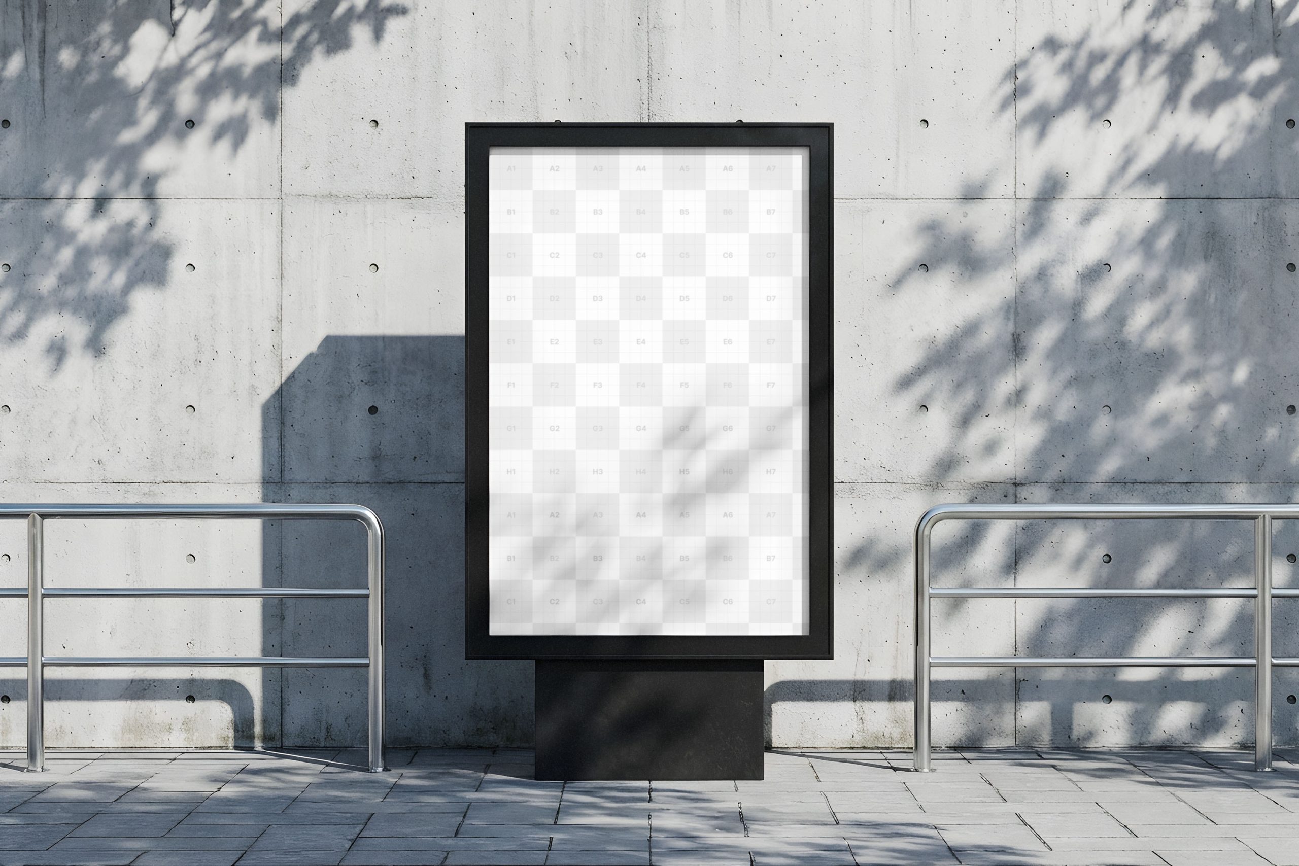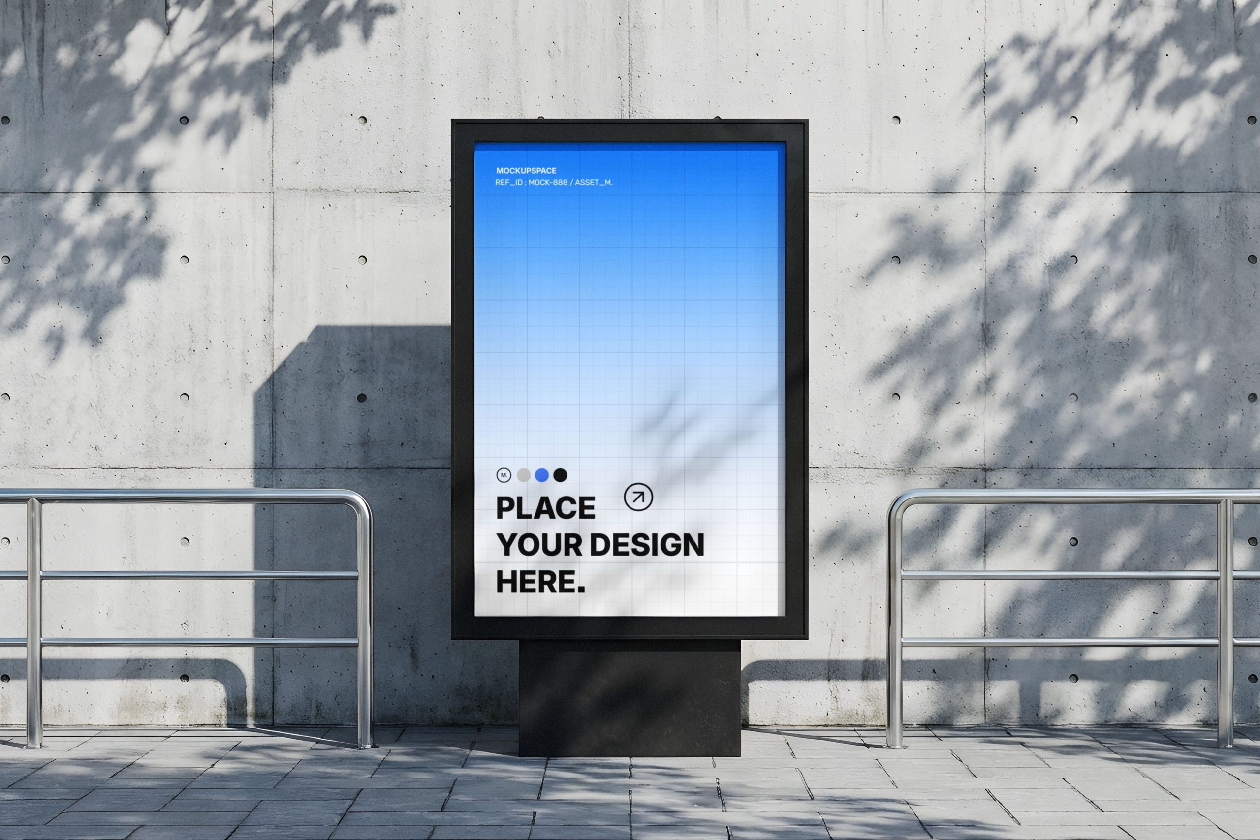 Enhance your advertising presentations with this free outdoor billboard mockup featuring a sleek vertical stand. Set against a realistic concrete wall with natural leaf shadows, this high-quality PSD template provides a professional backdrop for showcasing street-level advertisements, posters, or branding campaigns. Designers can easily customize the smart object layer to display their creative work in a modern urban environment. Perfect for portfolio displays or client pitches, this asset ensures your designs look impactful and authentic in a real-world setting. Available for free download.