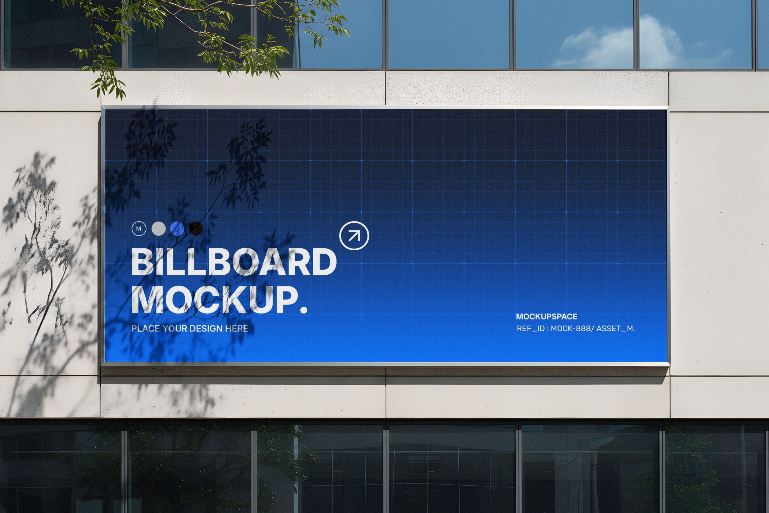 Elevate your advertising presentations with this premium Outdoor Billboard Mockup, designed to showcase large-scale branding projects in a realistic urban environment. This high-resolution template features a massive horizontal billboard mounted on the exterior of a modern glass office building. The inclusion of natural tree shadows across the facade adds an authentic layer of depth and realism, making your designs feel truly integrated into the physical space. Ideal for marketing agencies and graphic designers, this mockup allows you to demonstrate how outdoor campaigns will appear in a high-traffic metropolitan setting. Whether you are presenting a new product launch, a cinematic movie poster, or a corporate identity system, this asset provides the perfect backdrop to impress clients. The clean lines of the architecture and the vibrant lighting ensure your creative work remains the central focus of the composition.