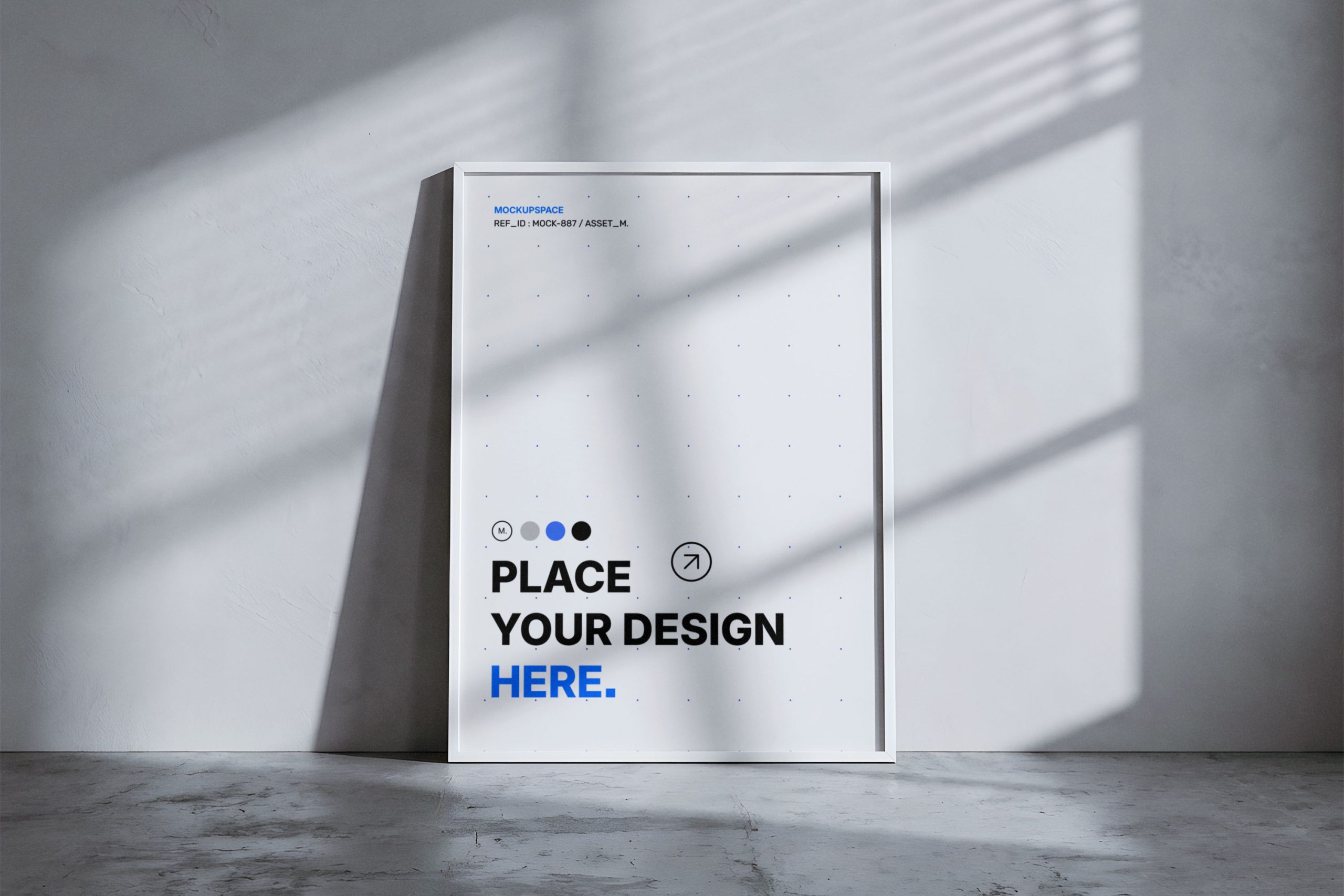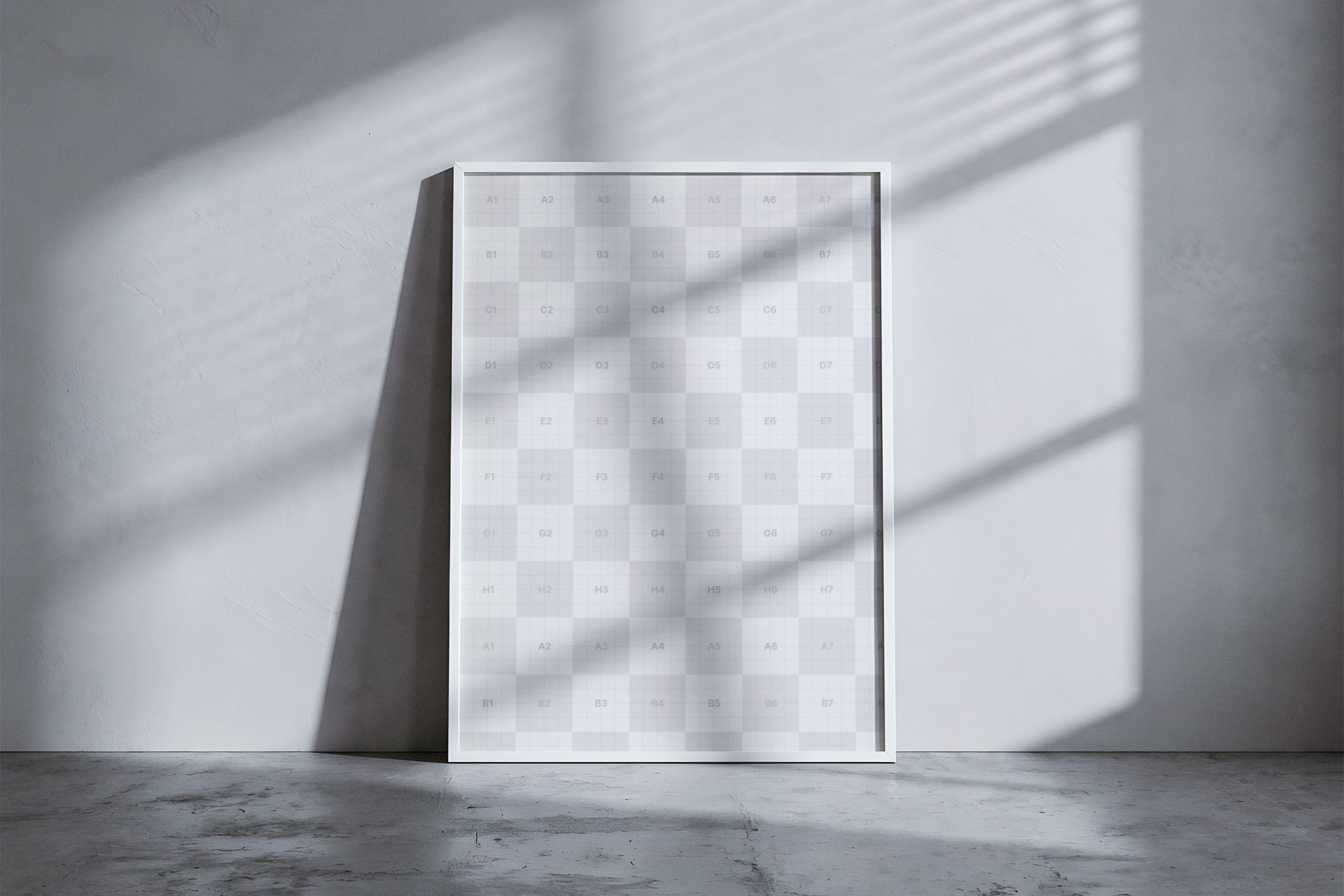 Elevate your creative portfolio with this stunning vertical poster frame mockup, designed for designers seeking a sophisticated presentation. This high-quality asset features a minimalist white frame leaning against a textured concrete wall, bathed in natural sunlight and soft window shadows. The interplay of light and dark adds a layer of depth and realism to your artwork, making it perfect for showcasing art prints, photography, or typography projects. Whether you are preparing a client presentation or updating your online portfolio, this mockup provides a clean and professional backdrop that doesn’t distract from your core design. The high-resolution texture and realistic lighting ensure your work looks gallery-ready in seconds. Ideal for modern branding and interior design visualization, this versatile template is a must-have for any creative professional’s toolkit. It helps your audience visualize your designs in a real-world, contemporary environment.